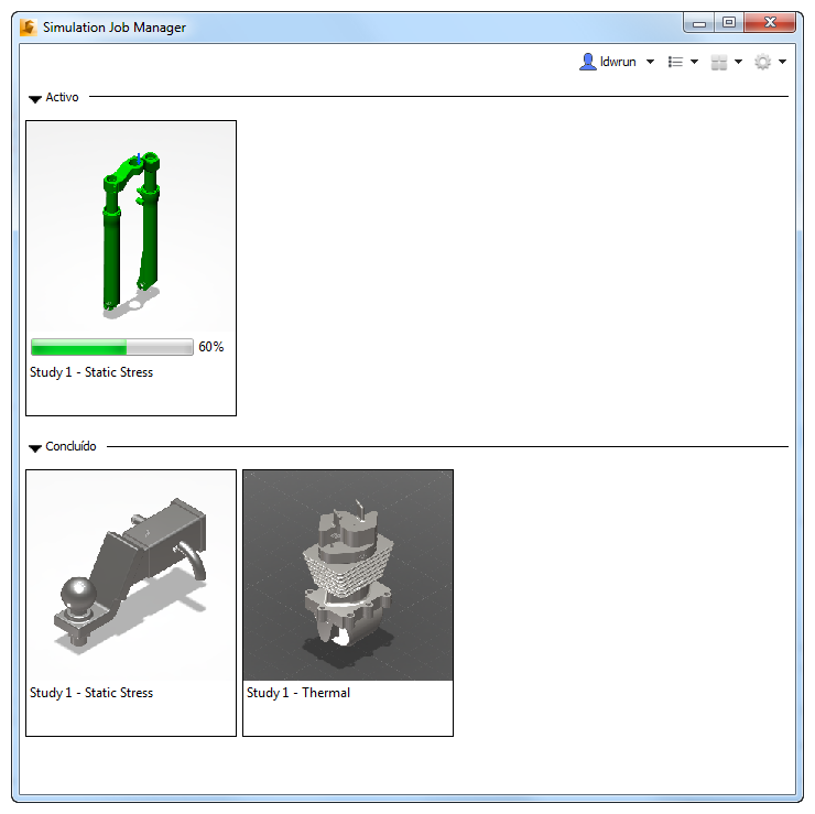 Utilize a vista em Miniatura para monitorar graficamente o andamento de seus trabalhos durante o processo do Autodesk® 360. A vista em Miniatura informa sobre a condição dos seus trabalhos e indica quando eles são concluídos com êxito. Se ocorrer um erro que impeça uma conclusão bem-sucedida, você poderá acessar um arquivo de registro para visualizar um relatório de erro.