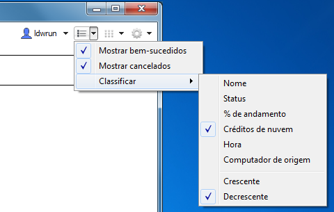 Para inverter a ordem dos trabalhos classificados, selecione Crescente ou Decrescente.
