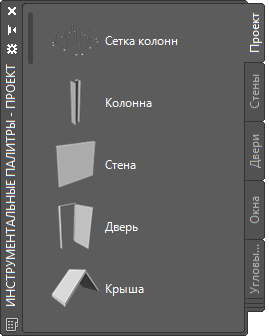 Инструментальная палитра "Проектирование" содержит образцы инструментов перекрытий м скатов крыш, которые, при необходимости, можно адаптировать. Инструменты перекрытий или скатов крыш со стилями и свойствами, настроенными в соответствии с проектами или стандартами организации, могут также находиться на пользовательских палитрах, созданных администратором САПР или другими пользователями.