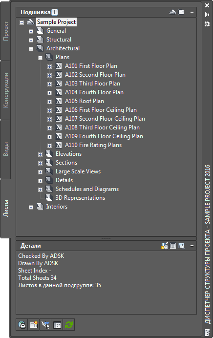 Подшивка проекта в Диспетчере структуры проекта AutoCAD Architecture