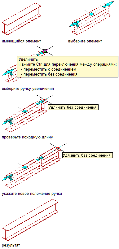 Эта процедура используется для изменения длины несущего элемента. Можно также изменять длину несущего элемента в палитре свойств.