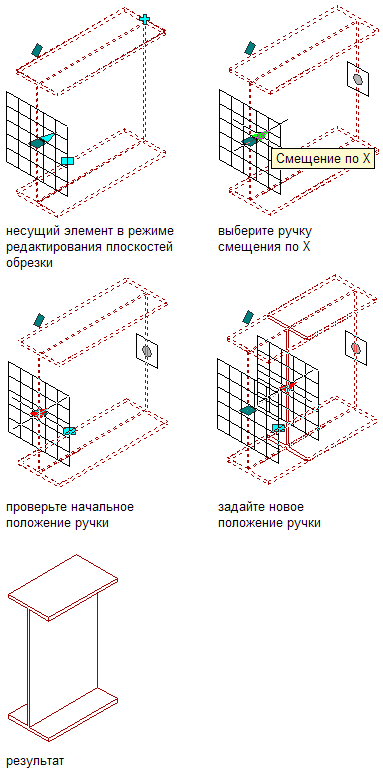 | сместить плоскость обрезки в направлении X вдоль оси выдавливания элемента, | введите значение смещения по X. |