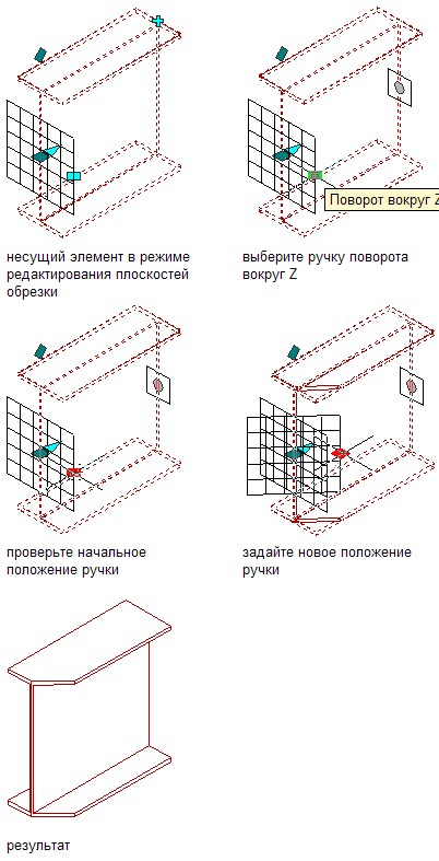 К несущему элементу можно добавить любое число плоскостей обрезки. При добавлении плоскости обрезки к одному или более несущему элементу задается положение плоскости обрезки относительно обрезаемого несущего элемента.