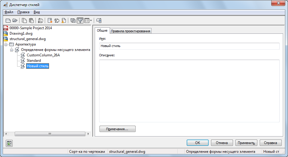 - Чтобы добавить новую форму к списку "Определений форм несущих элементов" и выйти из Диспетчера стилей, нажмите "ОК".