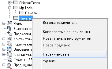 Будет создана новая панель инструментов (с именем "Панель1"), а в нижней части выбранной пользователем панели инструментов будет помещено всплывающее меню, ссылающееся на созданную панель инструментов.