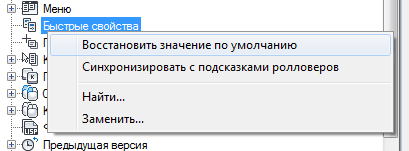 - Выберите "Восстановить заданные по умолчанию значения быстрых свойств".