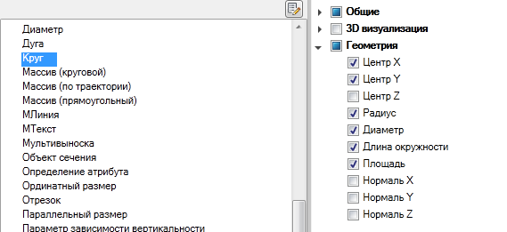 Если рядом с типом объектов установлен флажок, свойства объектов этого типа отображаются в палитре "Быстрые свойства" при выборе объекта этого типа, установке для системной переменной QPMODE значения 2 и включении переменной PICKFIRST. Чтобы удалить выбранный тип объектов из палитры "Быстрые свойства", снимите флажок рядом с ним.