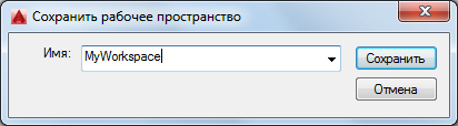 В поле "Имя" диалогового окна "Сохранение рабочего пространства" введите имя для создания нового рабочего пространства или выберите имеющееся рабочее пространство в раскрывающемся списке для его замены.