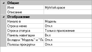Новое рабочее пространство, не содержащее элементов интерфейса пользователя (с именем "РабочееПространство1"), помещается на последнюю строку в структуре узла "Рабочие пространства".