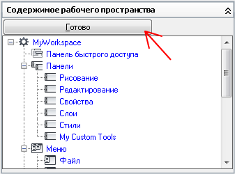 На панели "Компоненты рабочего пространства" нажмите кнопку "Готово".