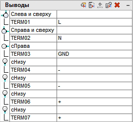 Вставка атрибутов точек подключения и связанных атрибутов выводов.