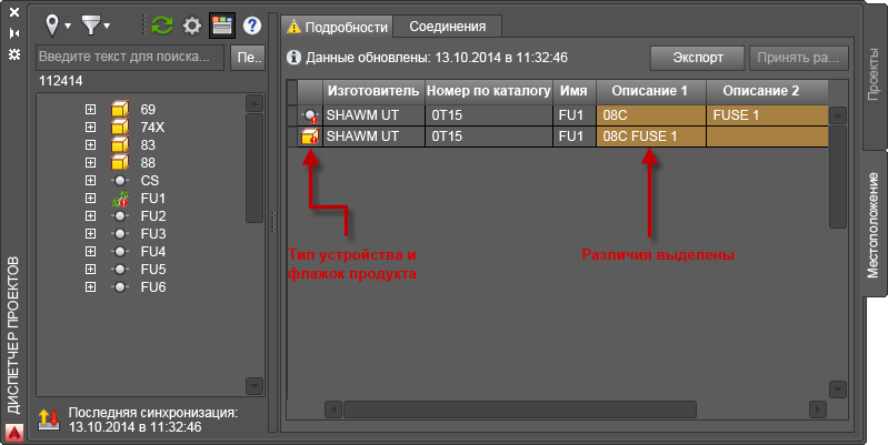 На новой вкладке "Местоположение" в Диспетчере проектов представлен полный обзор устройств и проводных соединений, которые содержатся в активном проекте. Компоненты организованы по значениям функциональной группы и места.