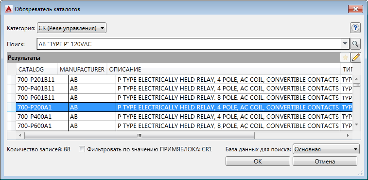 Выбранные код изготовителя и номер по каталогу отображаются в диалоговом окне "Вставить/Редактировать компонент". При нажатии "ОК" в диалоговом окне значения будут переданы в графический образ.