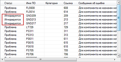 Игнорируемые ошибки отображаются в столбце "Статус".