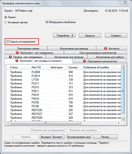 Статус ошибки сохраняется при каждом запуске проверки и во всех сеансах AutoCAD Electrical.