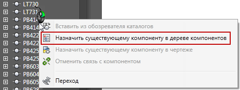На вкладке "Местоположение" щелкните в дереве правой кнопкой мыши компонент AutoCAD Electrical или деталь Inventor и выберите "Назначить существующему компоненту в дереве компонентов".