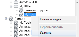 Осторожно: Отменить удаление панели ленты из вкладки ленты невозможно. В случае удаления панели ленты щелкните "Отмена" для выхода из редактора адаптации пользовательского интерфейса (АПИ) без сохранения изменений. При этом любые другие изменения будут также потеряны.