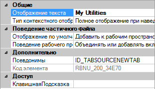 • В поле "Поведение рабочего пространства" укажите, будет ли данная вкладка ленты объединена или добавлена на ленту при загрузке файла CUIx как частичного.