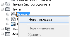 1. На вкладке "Адаптация" разверните на панели "Адаптации <имя файла>" узел дерева "Лента", щелкнув знак "плюс" (+) рядом с ним.