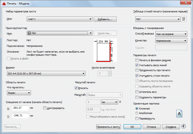 Автоматическое определение смещений по X и Y так, чтобы чертеж оказался в центре листа. Данный параметр недоступен, если в качестве области печати указан "Лист".