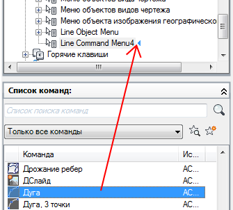 Чтобы вставлять параметры меню, относящиеся к активной команде в контекстном меню, необходимо использовать псевдоним COMMAND_имя_команды. Текст имя_команды может являться именем любой команды. Например, если требуется отображать опции меню в контекстном меню при работе с командой ОТРЕЗОК, можно использовать псевдоним СТРОКА_ОТРЕЗОК.