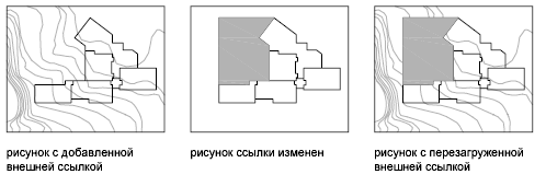 После сохранения отредактированного чертежа внешней ссылки в локальной сети любой другой можно отобразить изменения на своем чертеже, обновив внешнюю ссылку.