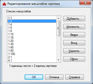 Диалоговое окно "Редактирование масштабов чертежа"