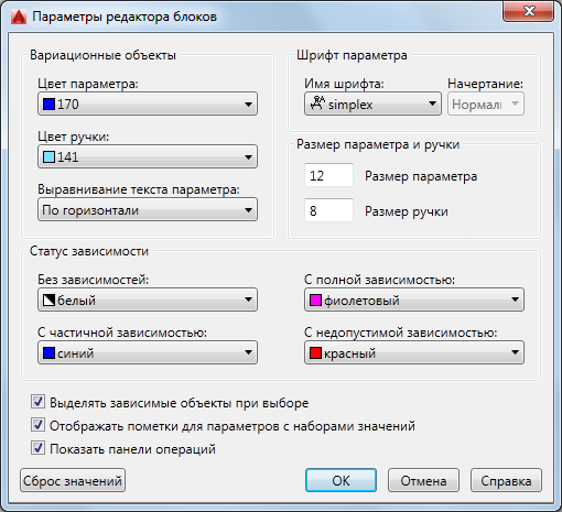 Восстановление значений по умолчанию для параметров редактора блоков.
