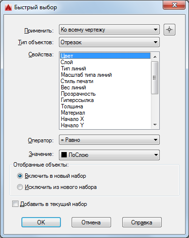 Если установлен флажок "Добавить в текущий набор", критерии фильтрации применяются ко всему чертежу.