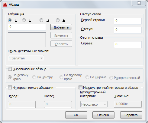 Задание параметров табуляции, отступов, выравнивания и разбивки абзацев, а также междустрочного интервала в абзаце.