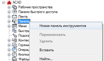 Новая панель инструментов (с именем Панель1) будет помещена внизу дерева "Панели инструментов".