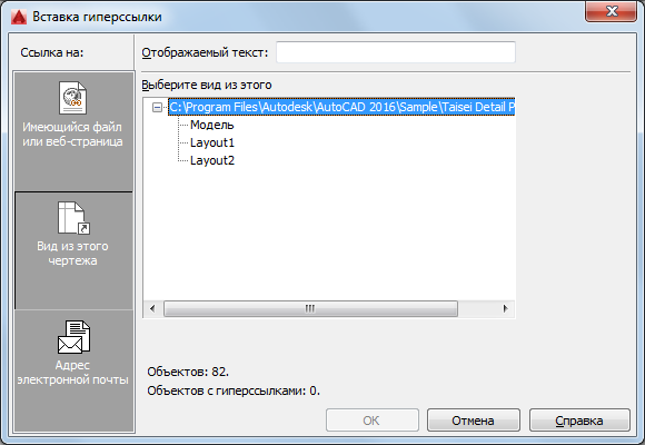 Вид из этого чертежа (диалоговое окно "Вставка гиперссылки")