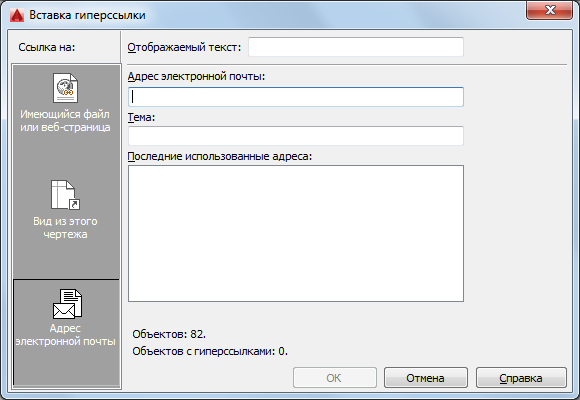 Адрес электронной почты (диалоговое окно "Вставка гиперссылки")