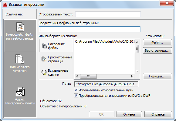Выбор между использованием относительного и полного пути для гиперссылок. При выборе этого параметра в гиперссылке не сохраняется полный путь к связанному с ней файлу. Для относительного пути устанавливается значение, указанное в системной переменной HYPERLINKBASE, или, если этой переменной не присвоено никакого значения, относительный путь определяется как путь к текущему чертежу. Если этот параметр не выбран, в гиперссылке сохраняется полный путь к связанному с ней файлу.