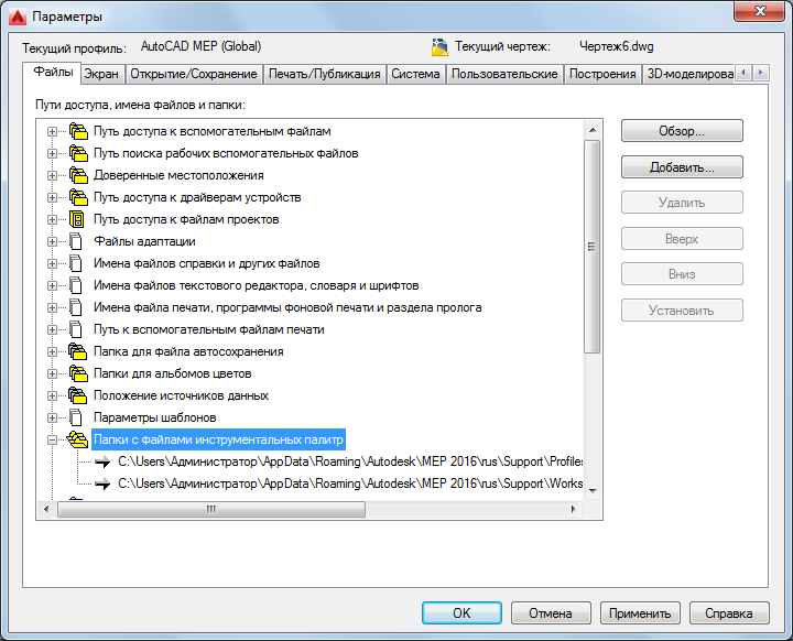 (ATC), предназначенного для инструментальных палитр, ориентированных на данный проект. При закрытии текущего проекта или назначении текущим другого проекта ориентированные на проект инструментальные палитры удаляются из списка путей.