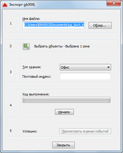 После создания помещений и группирования их в зоны можно экспортировать эту информацию в файл формата Green Building XML (gbXML) следующим образом.