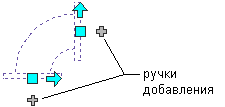 Имеющиеся на некоторых фитингах ручки добавления позволяют создавать новые ответвления непосредственно от фитинга. Например, при рисовании участка можно использовать имеющуюся на отводе ручку добавления, чтобы преобразовать отвод в тройник. Сохраняется соединение существующих ответвлений трубопровода.
