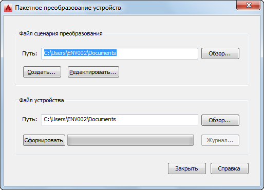 Сценарий преобразования содержит требуемые значения параметров стиля устройств, а также ссылки на чертежи, содержащие блоки AutoCAD®, которые требуется применять для видов стилей.