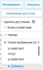 - В меню "Управление доступом" выберите "Все устройства", "Нет устройств" или список выбранных устройств.
