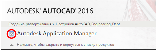 Для однопользовательской установки и развертывания, которая не использует стандартный рабочий процесс создания развертывания, необходимо перед установкой программы Autodesk удалить набор инструкций по установке Application Manager из файла setup.ini (находится в папке \cdrom1), как указано далее: