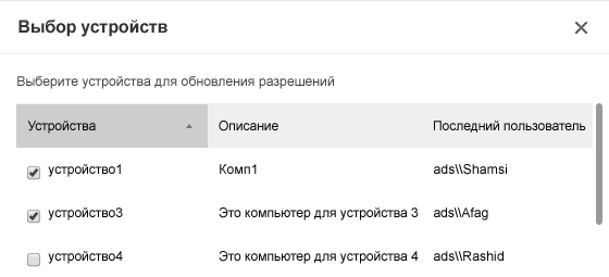 - В диалоговом окне "Выбор устройств" установите или снимите флажки для конкретных устройств.