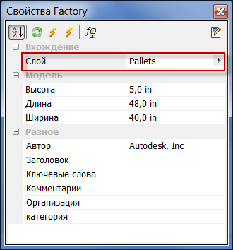 - Выберите один или несколько компонентов из компоновки перекрытия Factory. Нажмите и удерживайте клавишу CTRL или SHIFT для выбора нескольких объектов. Имя слоя выбранного компонента отображается в верхней части обозревателя Свойства Factory. Если выбрано несколько компонентов на разных слоях, то вместо имени слоя выводится *Многозначный*.