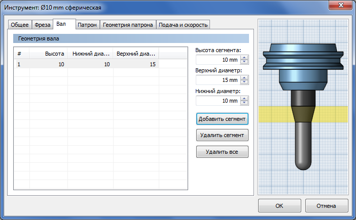 В диалоговом окне Создать фрезу можно редактировать отдельные инструменты. Окно разделено на шесть вкладок.