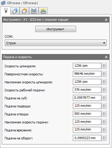 Скорость шпинделя, выраженная как скорость инструмента на поверхности.