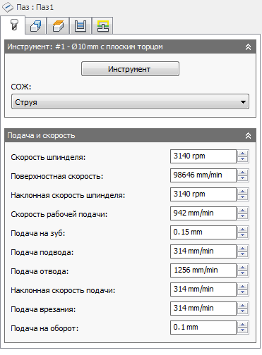 Указание максимального шага понижения на оборот профиля уклона. Этот параметр позволяет ограничить нагрузку на инструмент при выполнении вырезов в полную ширину в процессе создания уклона.