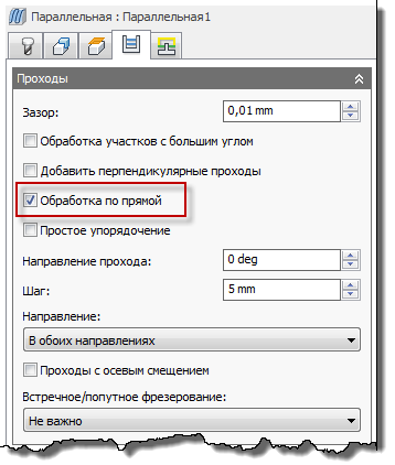Настройка Обработка по прямой