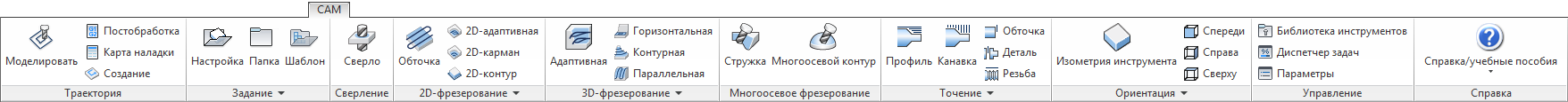 При запуске Autodesk Inventor или Inventor LT после установки Inventor HSM обратите внимание на вкладку CAM, добавленную на ленту команд Inventor. Команды на вкладке CAM видимы, активны и готовы для использования после создания или открытия детали Inventor или файла сборки.