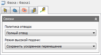 С помощью кнопки выбора Фаски можно выбрать одно или несколько дуговых ребер для создания фаски.