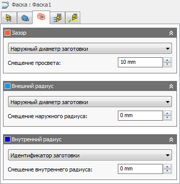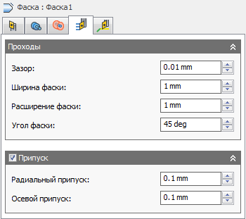 При изменении значения радиального припуска для осевого припуска автоматически задается аналогичное значение. Задать осевой припуск можно и вручную.
