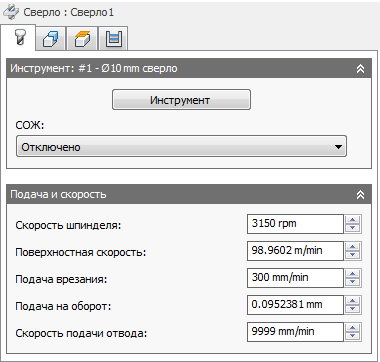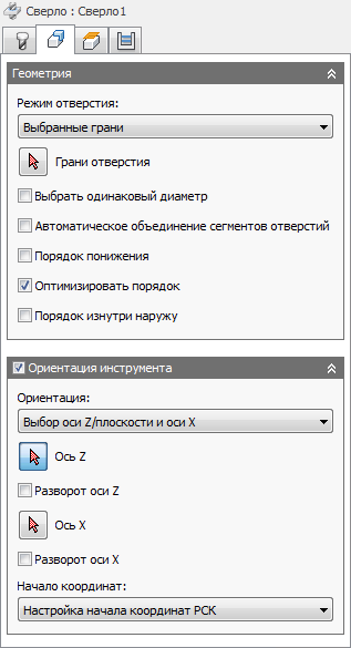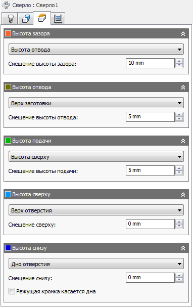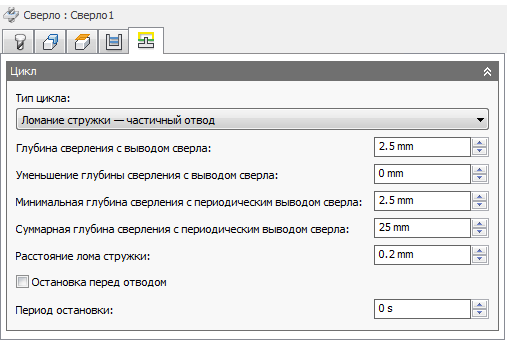 Выбор цикла сверления определяет параметры, которые можно задать для операции сверления.